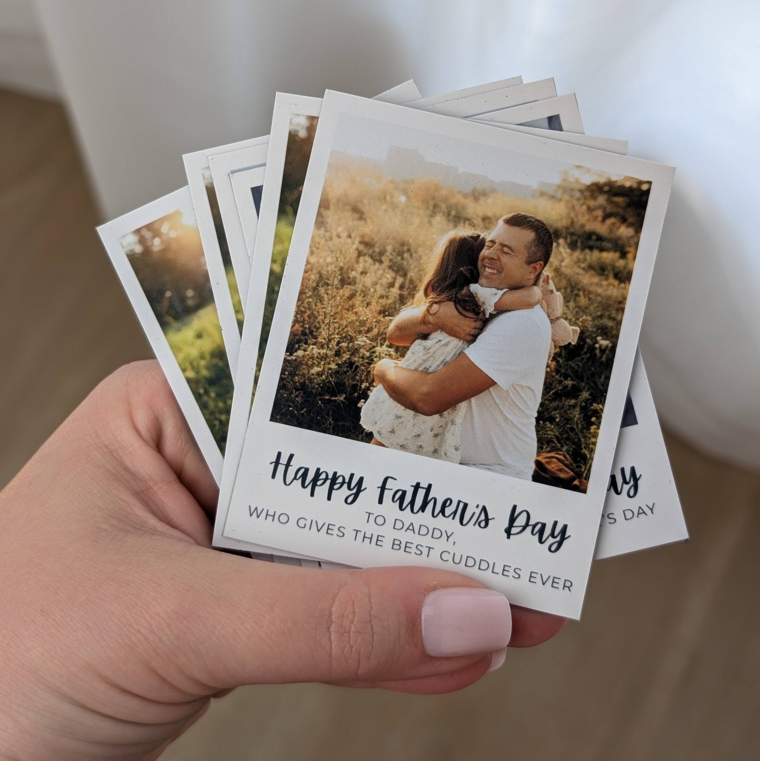 Printed on lustre paper, then mounted on a magnetic backing. Beautiful, magnetic and designed to last - just like your love.
