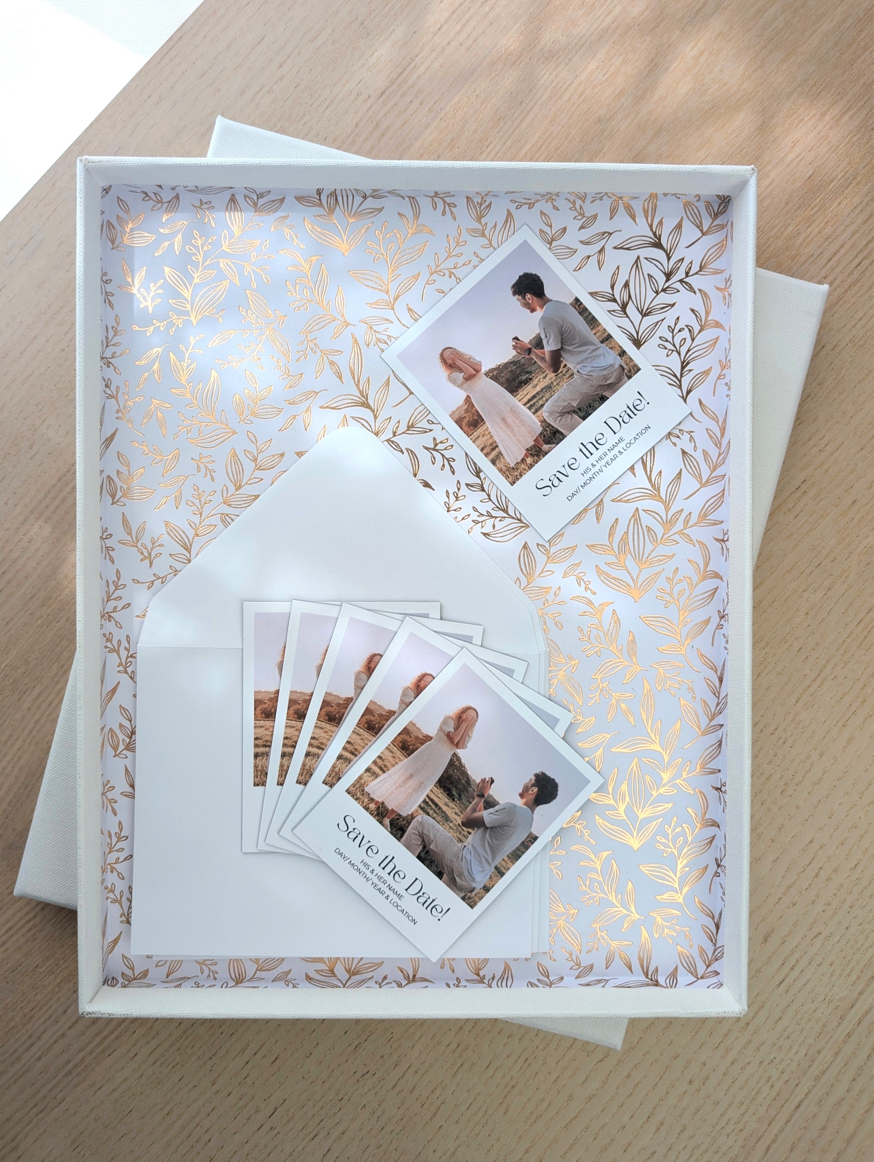 As a special gift from me to you, a linen keepsake box with gold foil print will be included in each Keepsake Invite purchase. Complimentary folded cards and crisp white envelopes are also included.